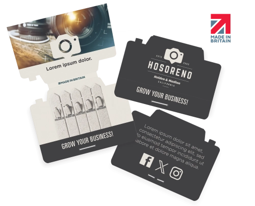 Camera Seedsticks - 62 x 46mm - this registered trademarked product evolved from a matchbook over 30 years ago with the striking end being replaced by seed! Seedsticks can be printed full colour, inside and out. The product is Made in Britain certified with a wide range of flower, vegetable, herb and tree seeds available. Tear it, plant it and watch it grow.Lead time is 7-10 days up to 1,000 units, 10-15 days up to 25,000 units